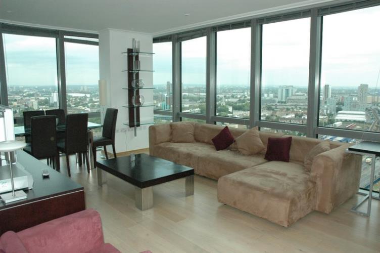 This spaciously appointed two bedroom with an en-suite bathroom to the master bedroom.The spectacular corner aspect of the reception room gives unparalelled vies to the Olympic village to the North and the O2 Dome to the East. The apartment comes fully furnished with modern contemporary furniture.This is a superb London luxury apartment and will not disappoint the discerning applicant renting a property in London.